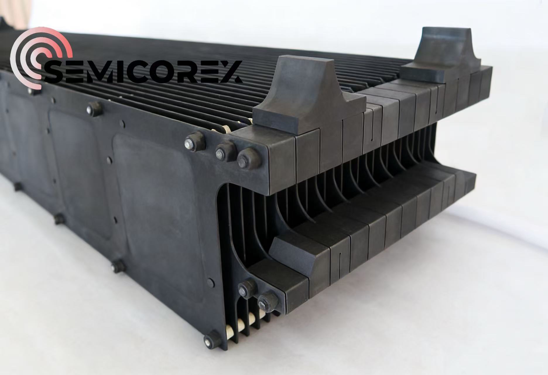 With a thermal expansion coefficient close to that of silicon wafers, Semicorx PECVD solar graphite boat experiences negligible dimensional change upon heating, which reliably avoids thermal stress-induced damage to the wafers.