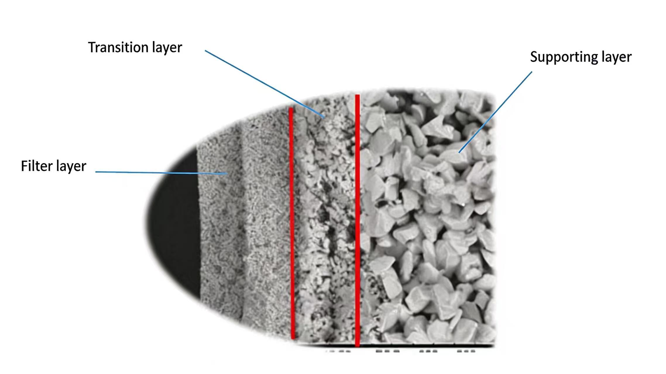 Semicorex SiC ceramic flat membranes exhibit a gradient pore structure, which is composed of three-layer composite structure: a 0.04µm dense microporous separation layer, a 0.5µm dense microporous secondary separation layer, and an 8µm open macroporous support layer. This special-designed gradient pore structure achieves precise physical sieving of molecules, particles, or ions of different sizes. Substances smaller than the pore size can pass through the membrane pores smoothly, while substances larger than the pore size are retained on the membrane surface or within the pores, thus achieving efficient separation and filtration.
