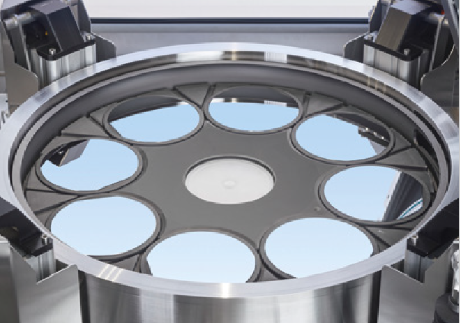 The TaC (tantalum carbide) coating further extends the performance and life of the planetary plate. Tantalum carbide is extremely hard, chemically inert, and thermally conductive, making it an excellent coating for extreme MOCVD environments. During epitaxy, the components in the reactor will encounter high temperatures, reactive precursor gases, and plasma exposure. The TaC coating serves as a robust barrier to corrosion, oxidation, and particle generation to result in a significant extension of the planetary plate life than an uncoated or conventionally coated plate.